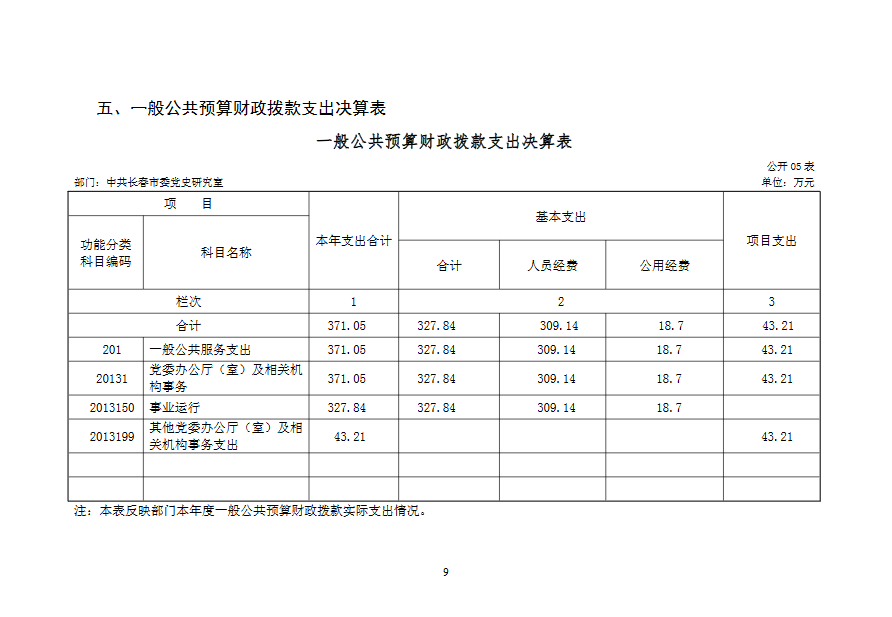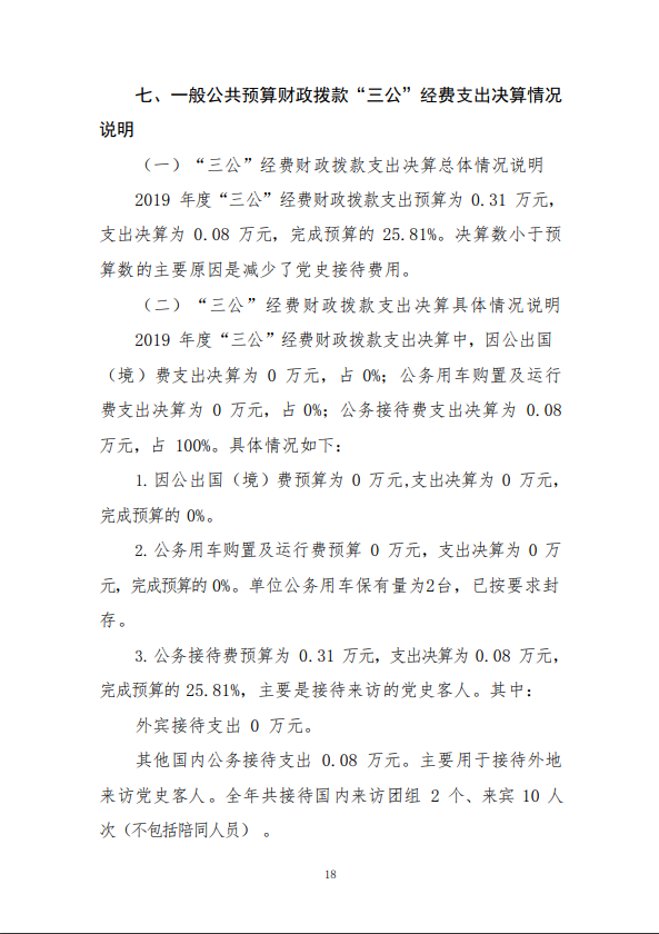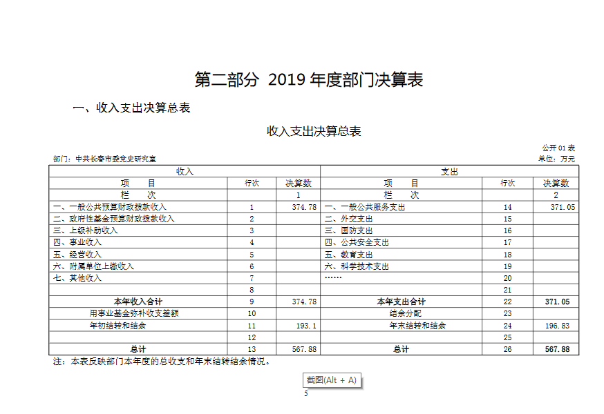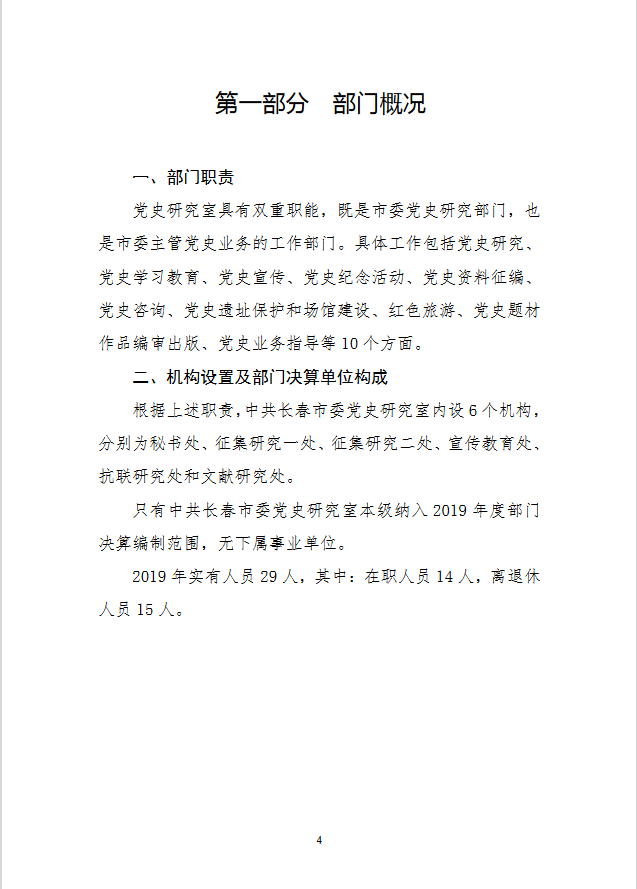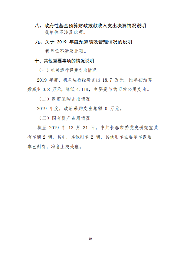 2019 年度 中共长春市委党史研究室部门决算