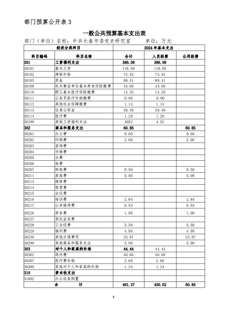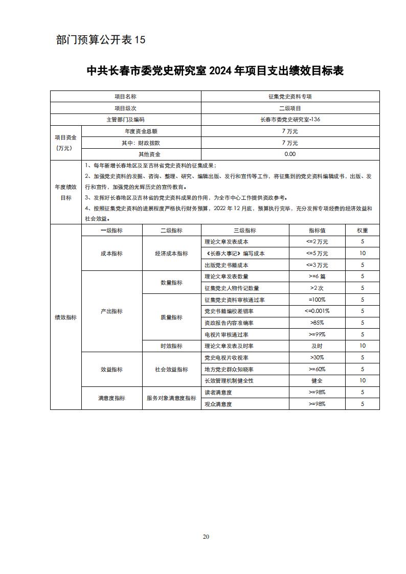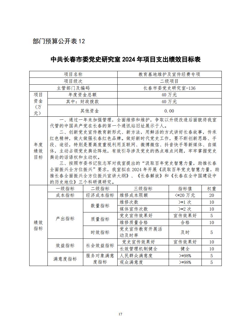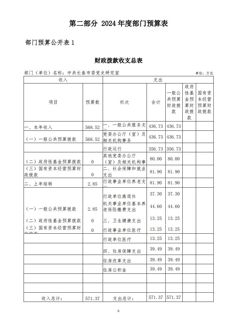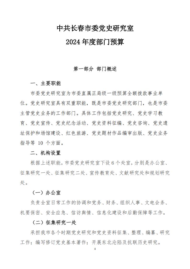 中共长春市委党史研究室 2024 年度部门预算