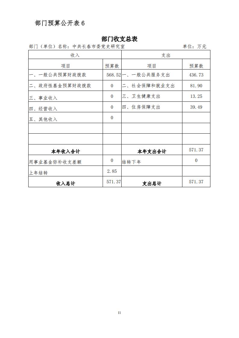 中共长春市委党史研究室2022年部门决算公开