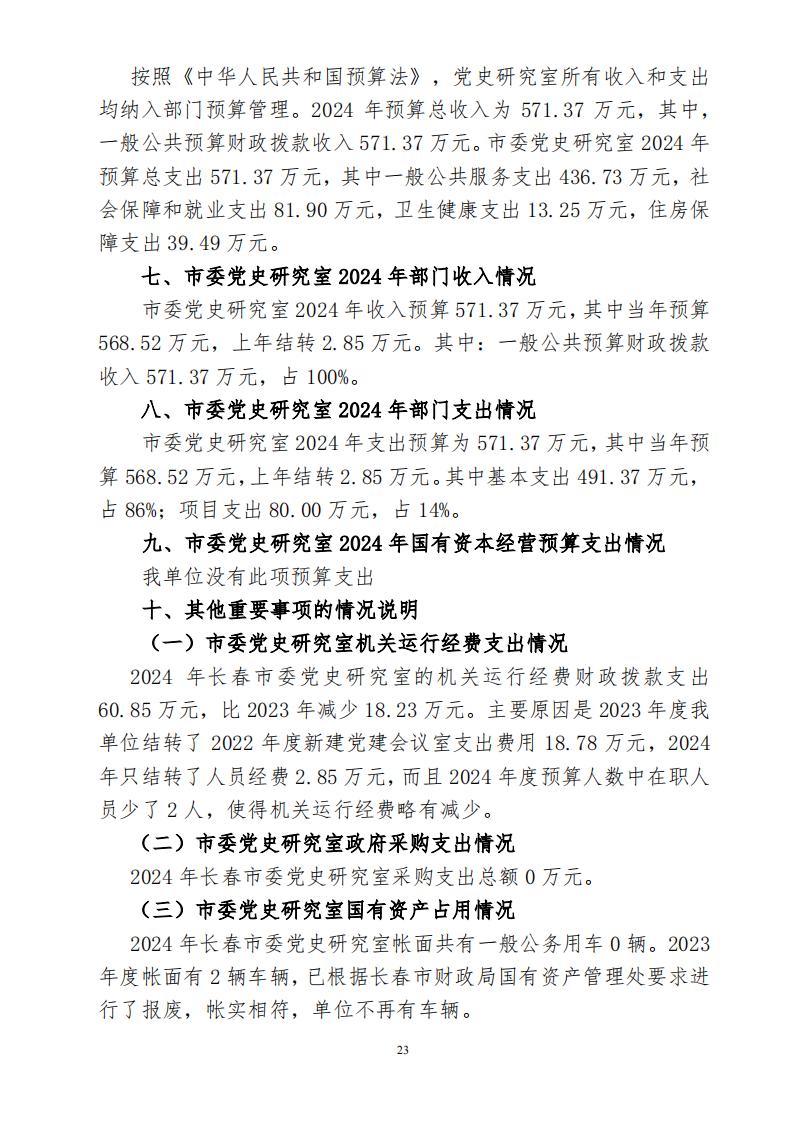 中共长春市委党史研究室2023年部门决算公开