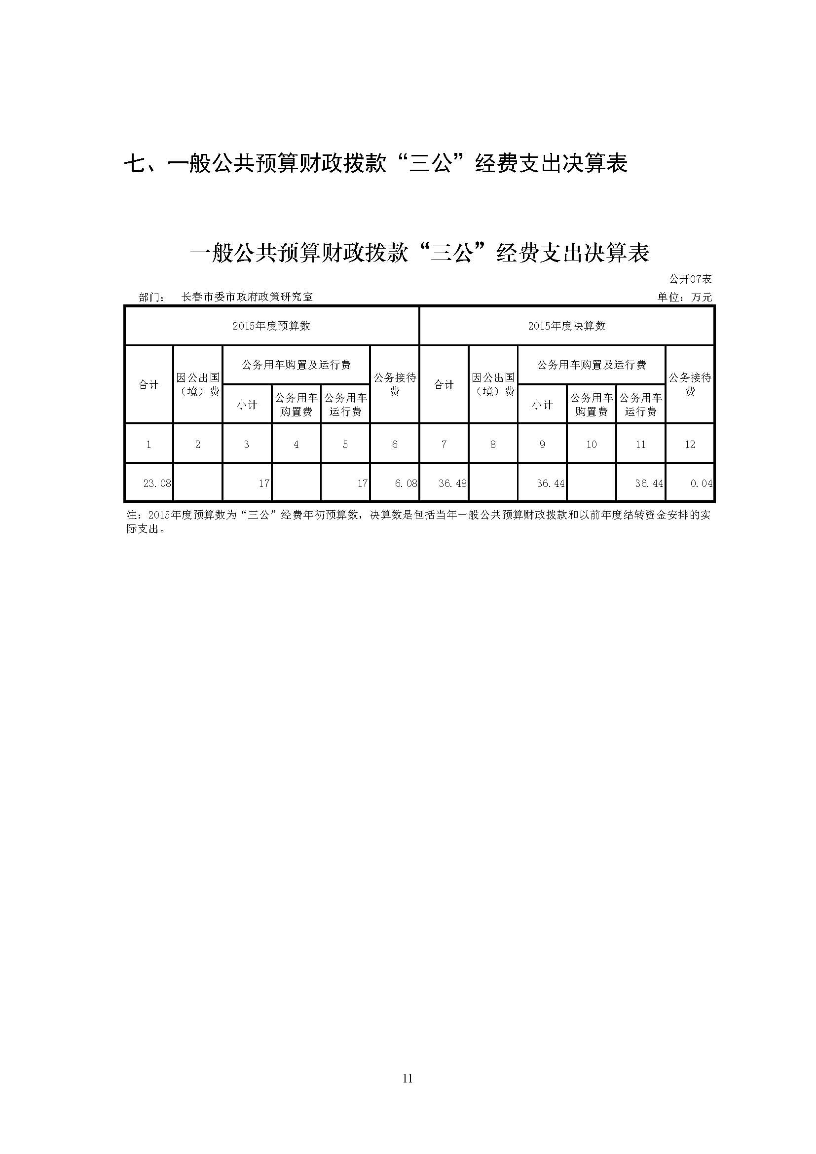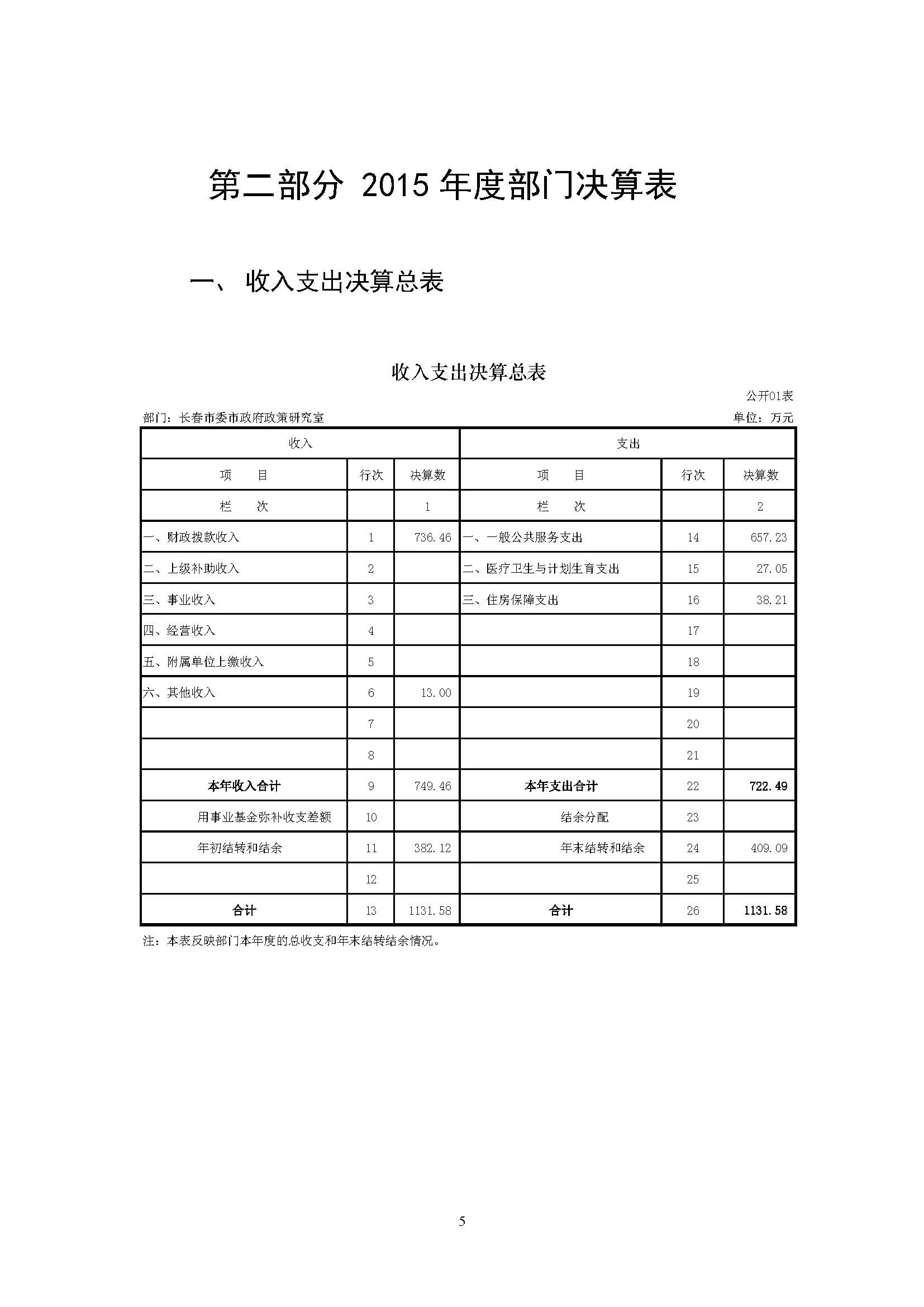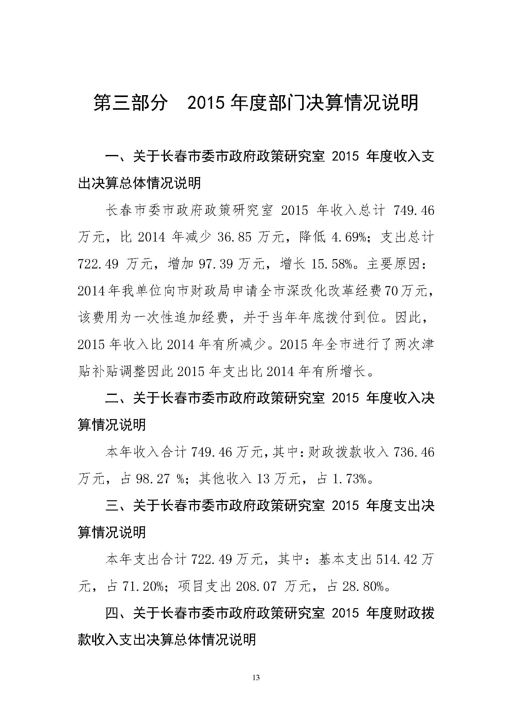 2015年度政策研究室部门决算公开