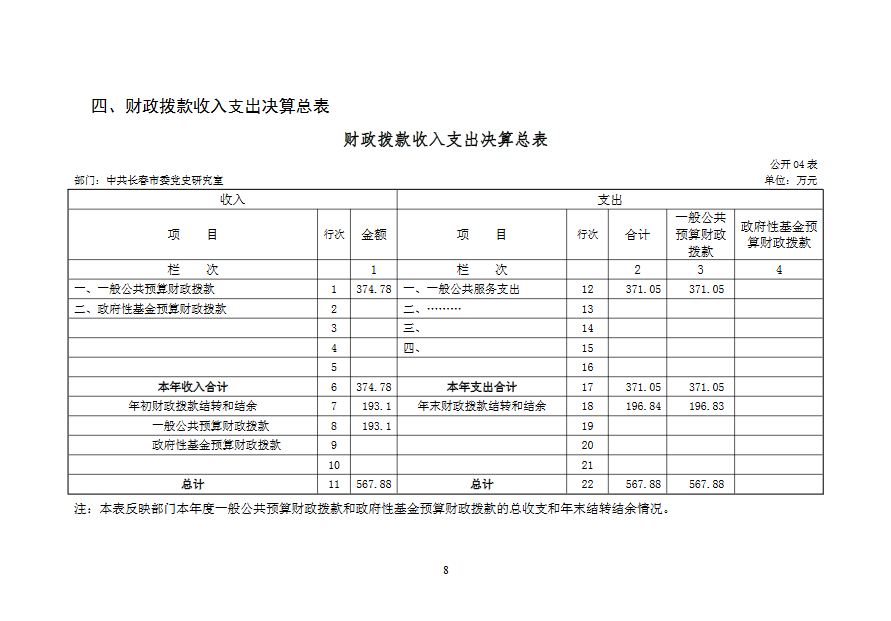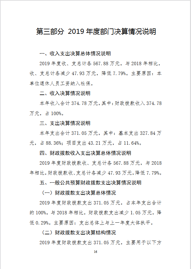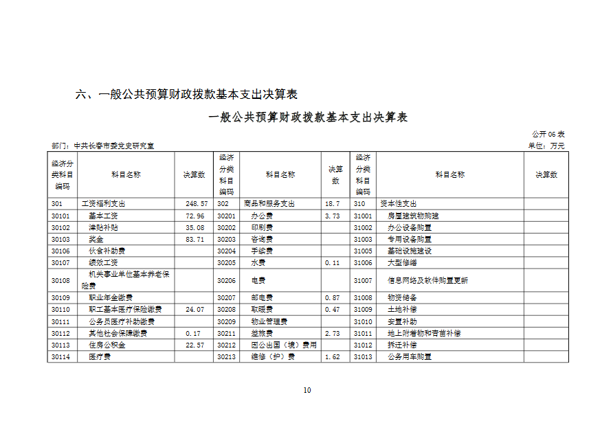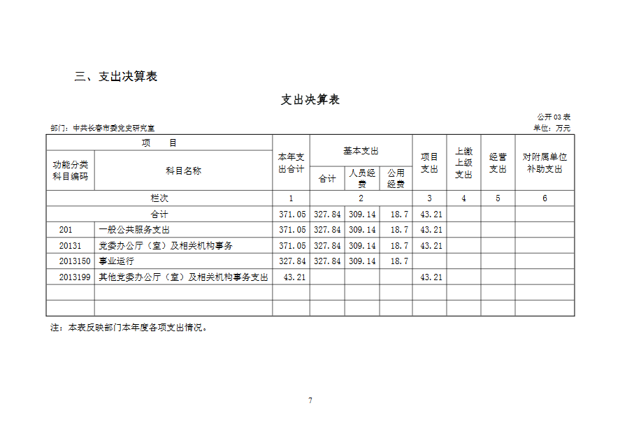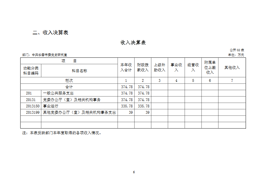 2019 年度 中共长春市委党史研究室部门决算
